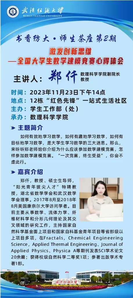 上一条:数理科学韦德bet 举办第四期书香纺大师生茶座 下一条:数理科学韦德bet 关于2023年研究生攀登奖学金、优秀研究生和优秀研究生干部拟推荐名单公示