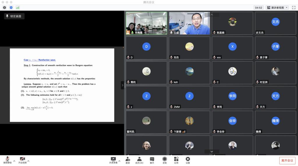 师生做了题为“Stability of viscous shock and rarefaction waves to compressible Navier-Stokes equations”的学术报告,报告线上线下同时进行并由数理科学韦德bet