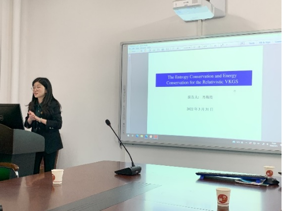 肖梅霞博士做题为“The Entropy Conservation and Energy Conservation for the Relativistic VKGS”的学术报告,汇报了近期在动理学方程研究领域中所做的一些相关工作。报告中,她首先介绍了相对论VKG系统的研究背景和国内外研究现状,然后讨论了该系统在弱解满足一定正则性的条件下的重整化性质和全局(局部)熵守恒律。接着介绍了该系统在概率密度函数满足一定可积性条件时,弱解的整体能量守恒律,同时强调了熵守恒和能量守恒在动理学方程中的重要意义。最后,简要阐述了今后值得去进一步研究和探讨的问题。