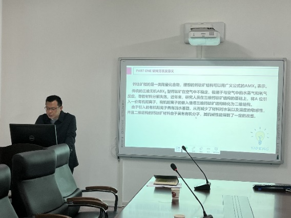 郭健勇博士报告题目为“基于液相方法的有机-无机杂化钙钛矿材料合成研究”。该报告基于DMF三元系溶剂体系,合成出丁胺铅碘、丁胺铅氯等纳米材料,并对镉掺杂丁胺铅氯材料的性能进行研究。测试结果表明适量的镉掺杂可有效提升材料的发光强度,显示出潜在的应用前景。
