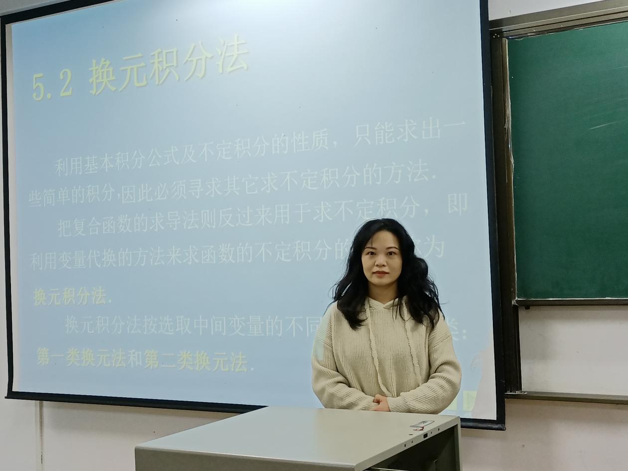 陈华老师的公开课内容为“不定积分的第一类换元法”。陈老师针对外经贸学生的实际情况,从问题的引入,公式的给出,计算的方法的等方面有层次的展开,由浅入深,逐层提升。并于报告后交流课程内容处理技巧、个人体会和教学心得。
