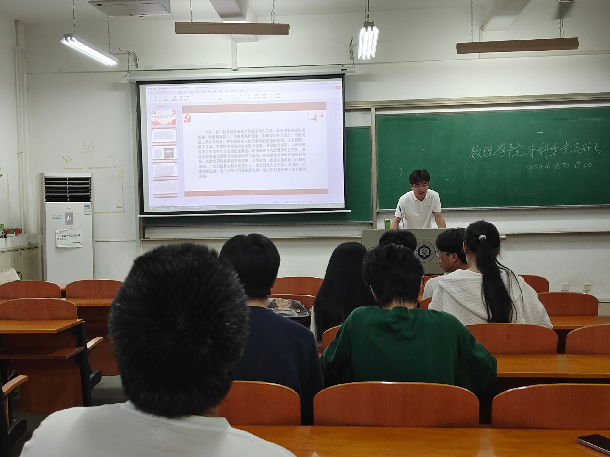本科生党支部于2025年4月26日在崇文楼开展4月份主题党日活动。会议由学生党支部党员陈屹同志、李圣璇同志和胡家发同志领学,党支部全体党员参加会议。