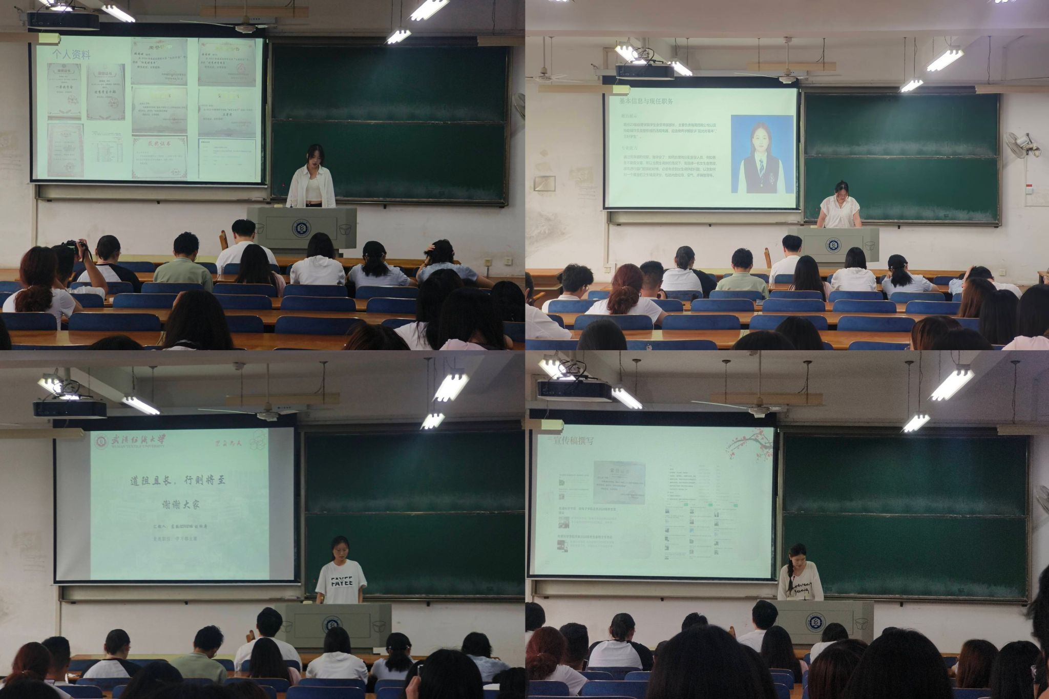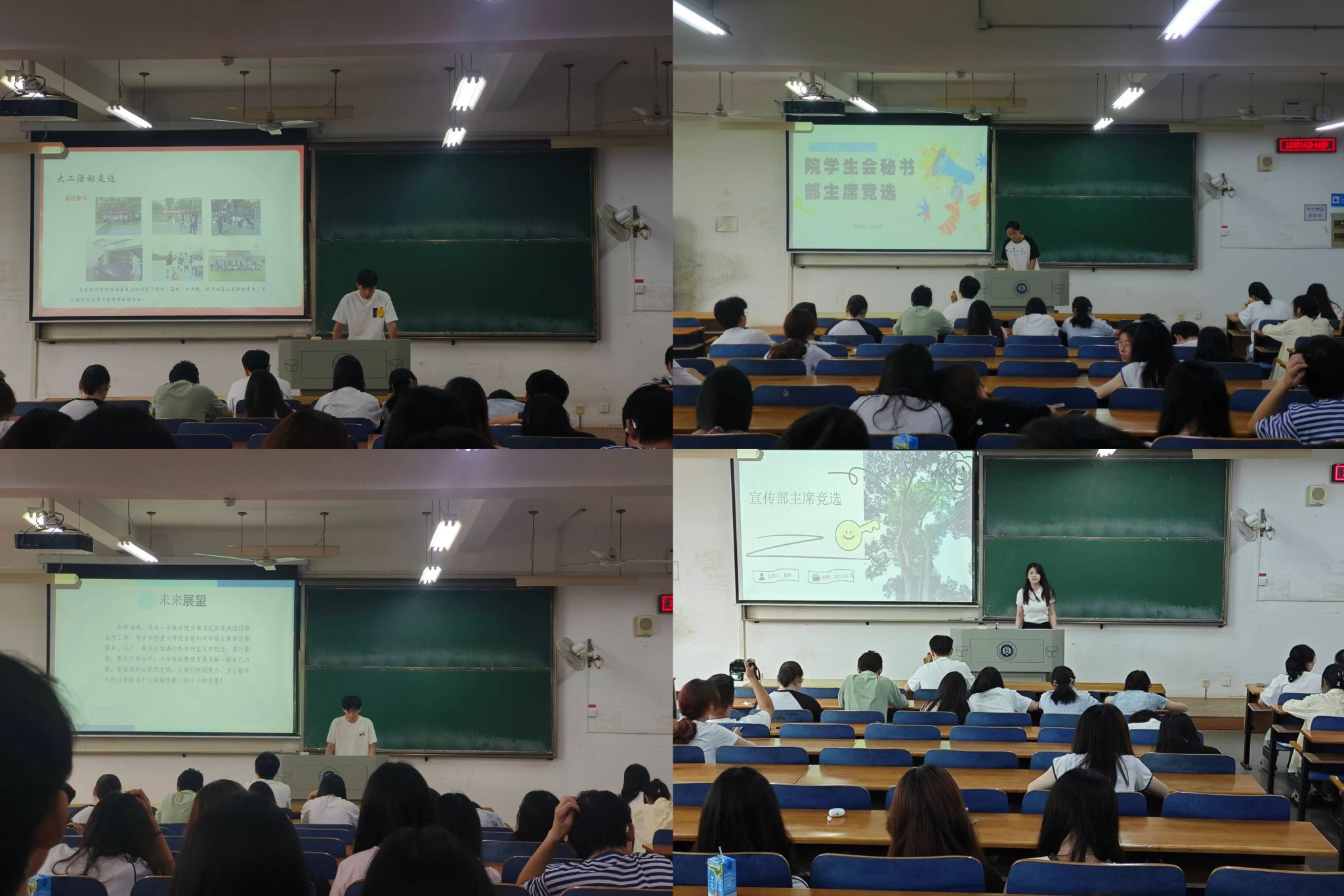 新一届主席团成员。八位候选人按照顺序依次进行演讲发言,满怀激情地阐述自己对于学生会工作的理解、自身优势以及部门未来发展措施。各位候选人演讲完毕后,各位参会学生代表对其投票。
