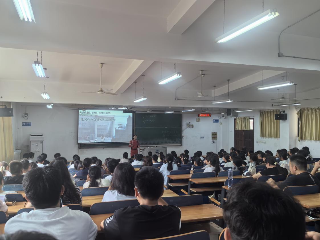 讲座中,张教官结合真实火灾案例与校园实际,通过现场教学,围绕火灾危害、火灾预防、火灾救助、火灾逃生进行了详细讲解,增强了入校新生对消防安全的认识,提高了火灾防控与应急处置能力。