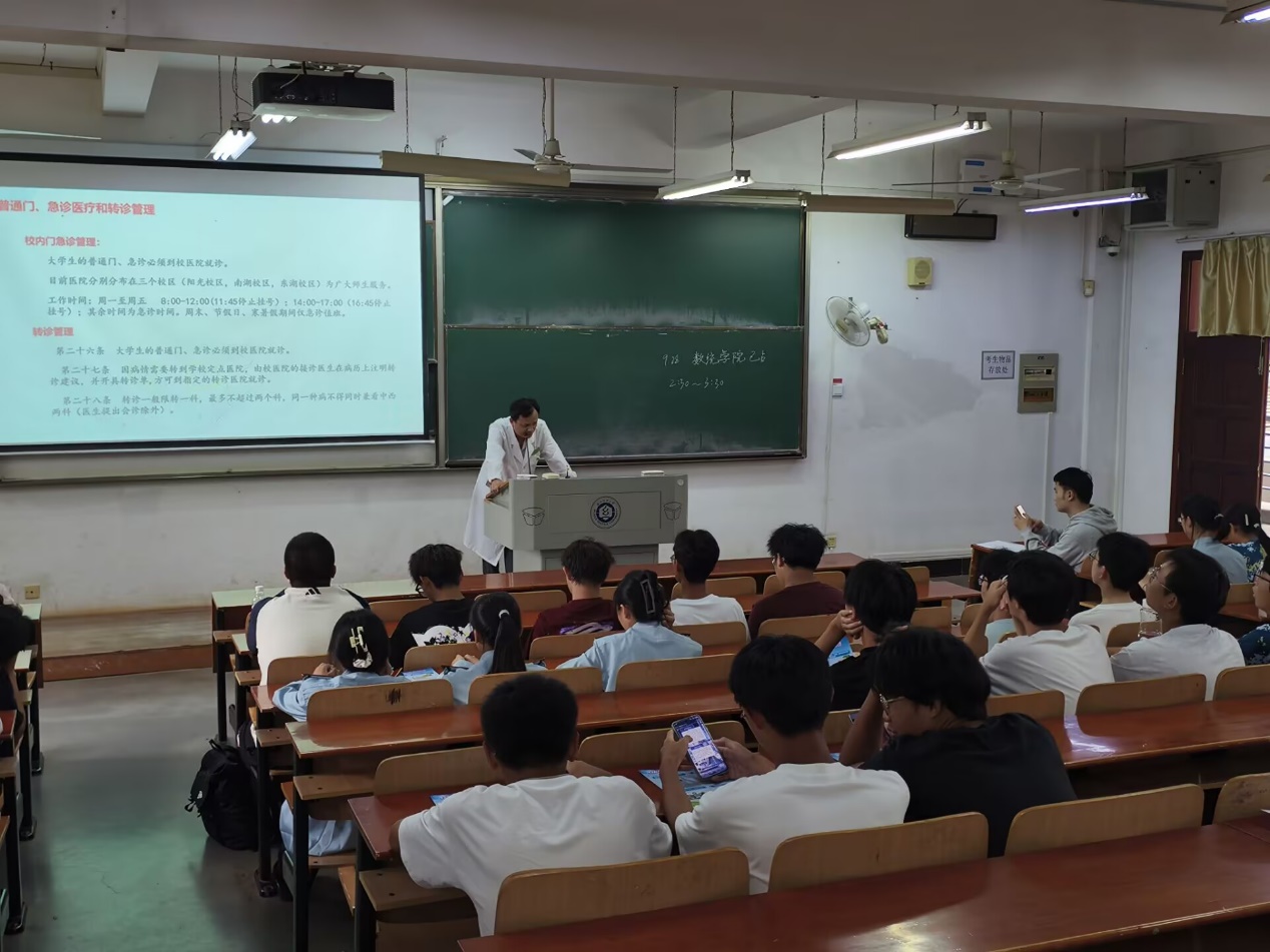 25级新生开展校医院新生入学教育专题讲座,为2025级新生详细讲解医疗保障、就诊流程等关键信息,筑牢新生健康防护屏障。