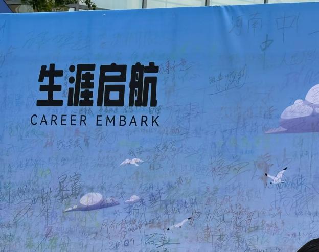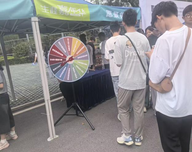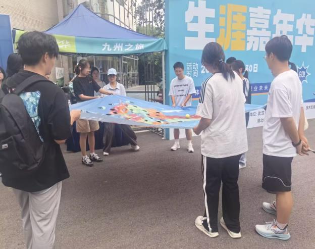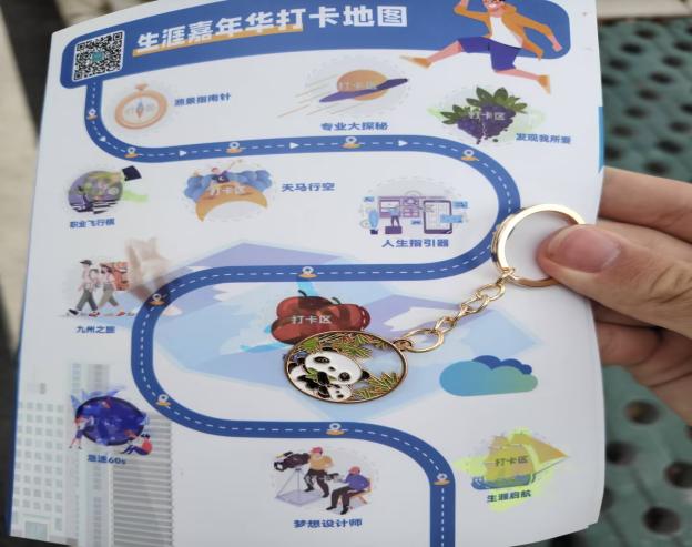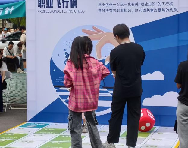 新生生涯嘉年华被设计成一场探索未来的沉浸式旅程,共设八个关键“站点”。新生们从设定方向的“愿景指南针”出发,在“职业飞行棋”中览遍行业,于“发现我所爱”和“人生指引器“中深入内心世界。接着,他们在“硕果累累”中憧憬收获,通过“九州之旅”放眼全国,在“急速60s”的团队协作中激发潜能。最终,所有感悟在“生涯启航”站化作一张驶向未来的船票。