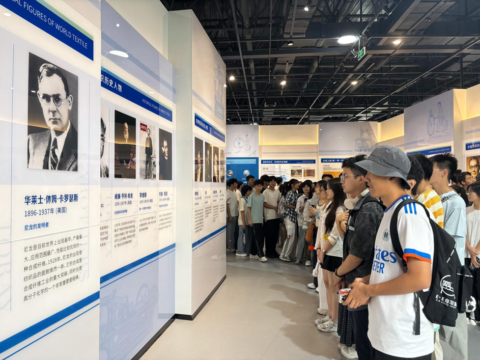 党委副书记陈国鹏、辅导员曾琦组织全体2025级新生前往纺织科技馆,开启一场兼具知识性与趣味性的纺织文化探索之旅。在讲解员的引导下,同学们穿梭于“传统织造”“现代产业”“未来纺织”三大展区,从黄道婆纺车到万吨级碳纤维生产线,从月面国旗“石头版”到火星探测器降落伞,一件件实物、一段段视频,生动诠释了“纺织+”如何服务国计民生、走向星辰大海。