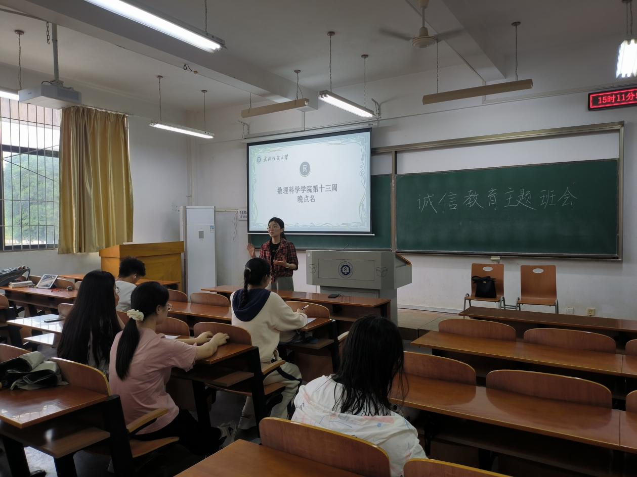 在班会宣讲上,班主任带领学生重温习近平总书记的多次讲话精神,小信成则大信立,诚信为人之本,要重信守诺,不要言而无信。让“秉信立行”观念融入班级建设、课堂学习、学术研究、宿舍生活和疫情防控之中,通过考试诚信、学术诚信、就业诚信、还贷诚信等方面展开讨论,切实做到诚信教育的实效性。