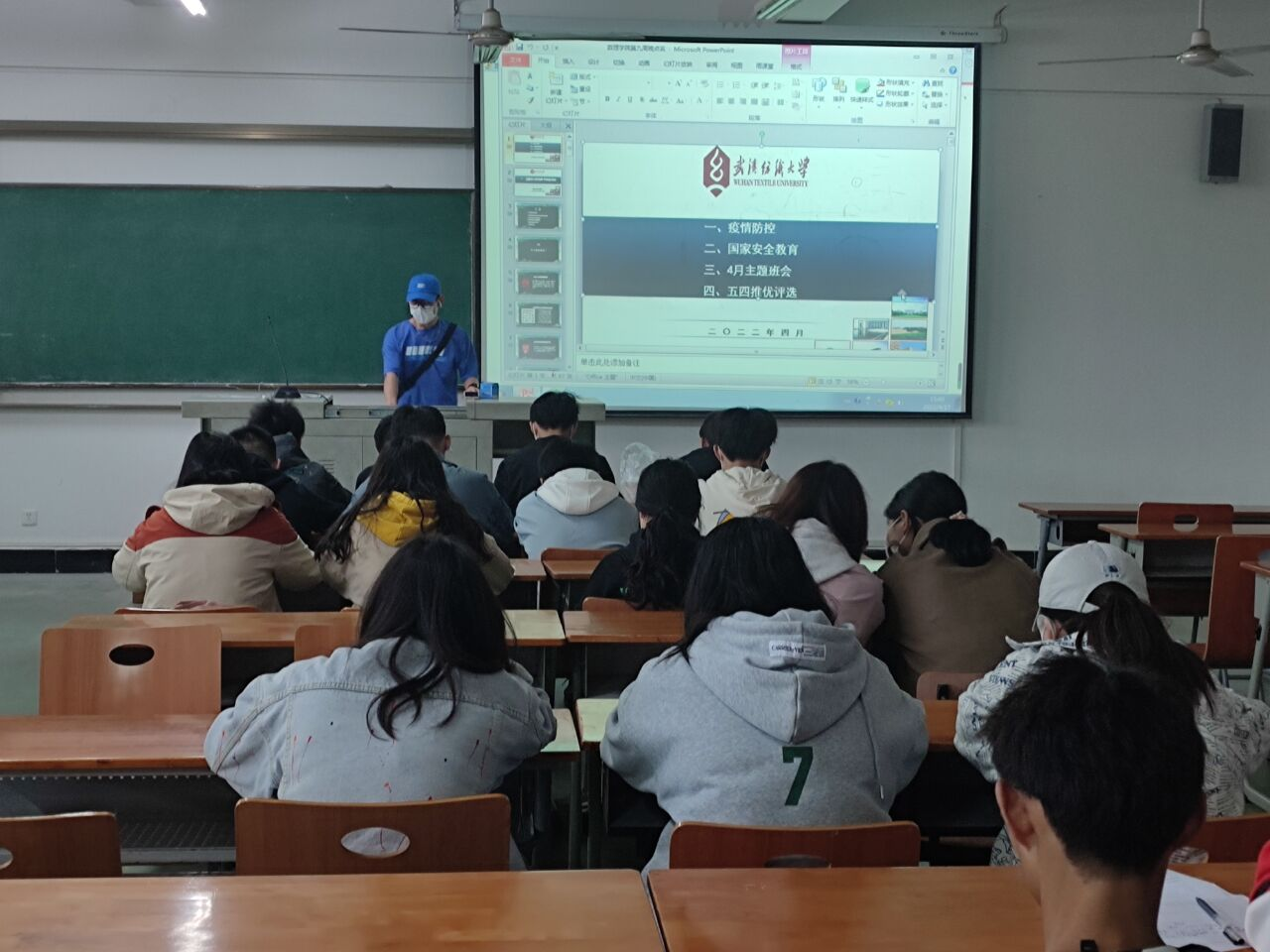 各班学生悉数参加此次班会,班会由各班班长、团支部书记主持。