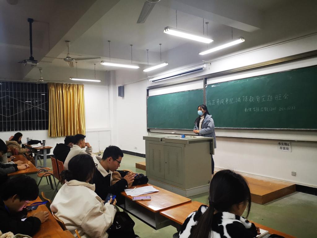 期末将至,为帮助同学们进入复习状态,树立良好的"考风、考纪”,进一步规范学校考试工作。12月12晚,数理科学韦德bet