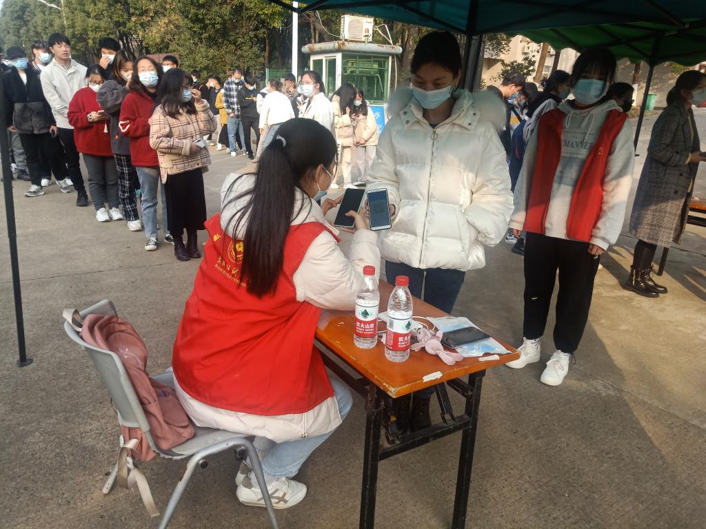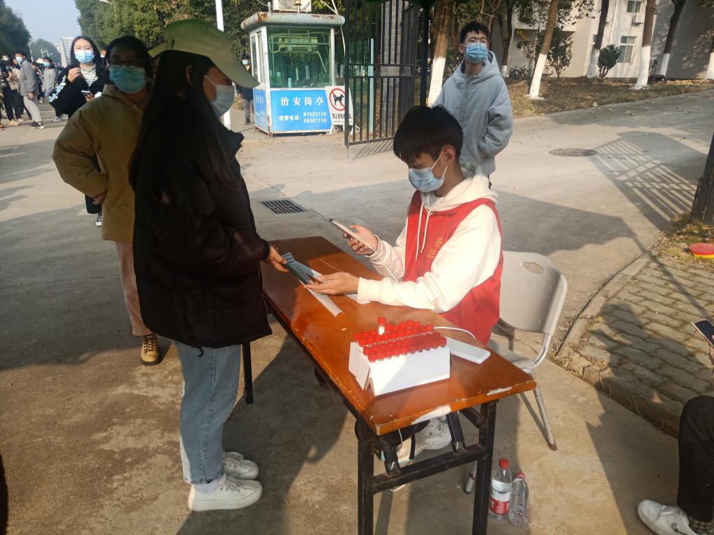 组织核酸检测志愿者于阳光校区保卫处负责核酸检测的志愿工作。数理韦德bet