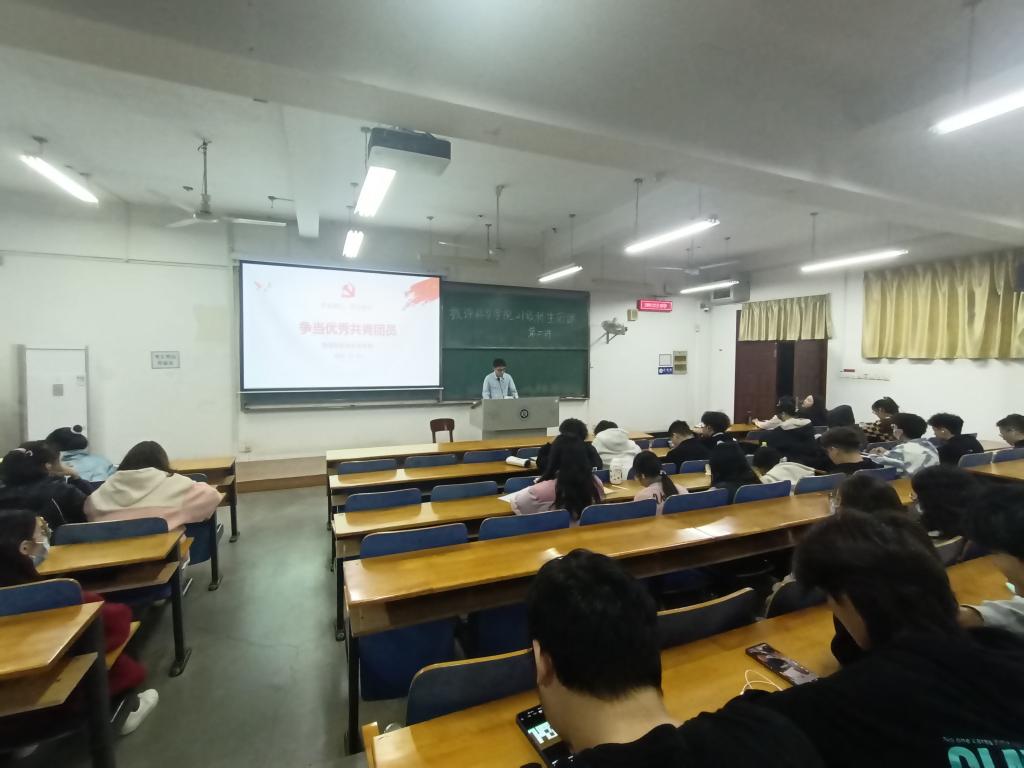 学生党支部预备党员郑思成、吴菲、夏雨露、罗淑杰主讲,2021级全体新生悉数参加此次活动。