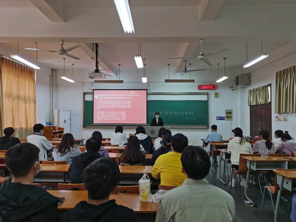 学生党支部在崇志楼213室召开10月份主题党日活动,全体党员参加会议。