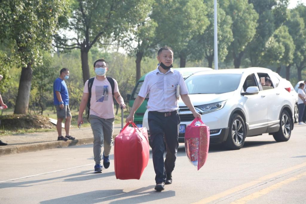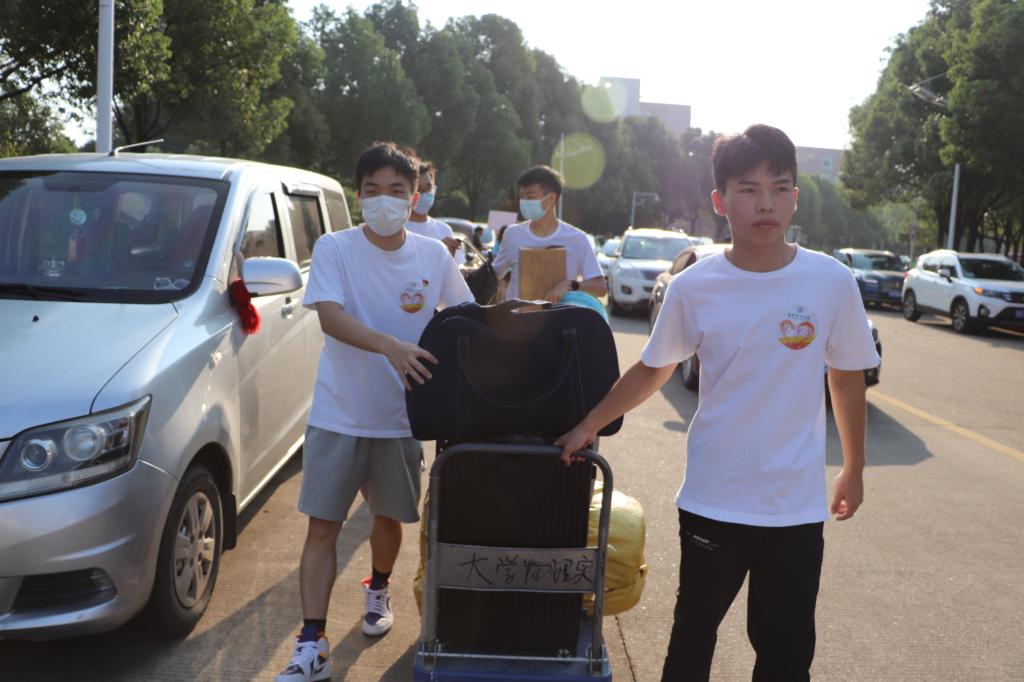 迎新点等待新生的到来。接应新生、搬运行李以及引导新生完成报到,确保每位新生安全准确到达宿舍是志愿者党员们的重要工作。奔走在迎新的道路上,烈日骄阳也掩盖不了党员志愿者们的热情和光芒,他们用全心全意为人民服务的态度展示了党员先锋形象,完成了与2021级新生的第一次相遇。