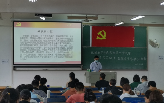 党委副书记陈国鹏号召全体党员,将党史学习作为“必修课”,努力做到“明理、增信、崇德、力行”,坚定“四个自信”,牢固“四个意识”,用党史学习心得指导日常学习工作和生活。他指出,入党积极分子不仅要注重理论学习,扎实基础,还应坚持在实践中检验自己,改进不足,力争上游。陈书记强调,入党是一件庄严而神圣的事情,希望大家以高标准严格要求自己,做到心中有信念,脚下有力量,早日成为一名合格的党员。