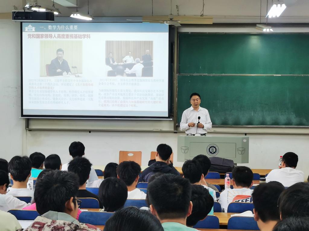 党委副书记汪思明,于崇真楼106室举办人文讲坛。发起人20级班主任仇华海现场与汪书记座谈,畅谈数学学习经验。副院长郑仟、党委副书记陈国鹏出席,2020级全体学生与会。