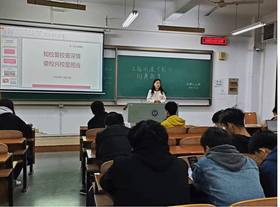 此外,团支书传达了“知校爱校寄深情,荣校兴校显担当”主题团课内容,向同学们传达一份深深的爱校情怀和为学校繁荣发展而努力的责任与担当。