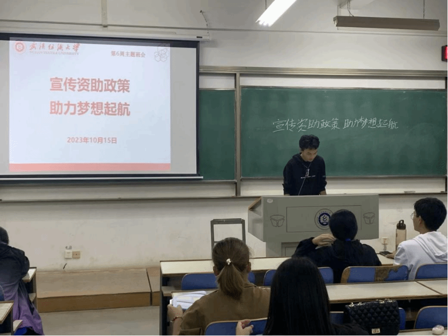 会议伊始,各班班长传达了“宣传资助政策,助力梦想起航”主题班会内容,告知同学们资助政策主要内容,从国家、学校、社会、地方四个方面介绍了本科生资助工作体系,引导同学们了解该政策,为困难学生助力。