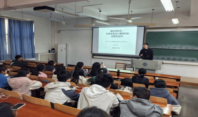 在“阳光心灵大讲堂”活动中,黄东涛主任以“做好信息员——大学生常见心理危机的识别与应对”为题,进行了深入的讲解。他首先强调了心理委员和寝室长在预防心理问题产生中的关键作用,接着详细介绍了抑郁症的症状识别、及时报告心理危机的重要性,以及其他心理异常疾病的识别和预防。此外,他还阐述了心理危机事件的诱因和应对措施,以及在遇到危机时如何正确行动。