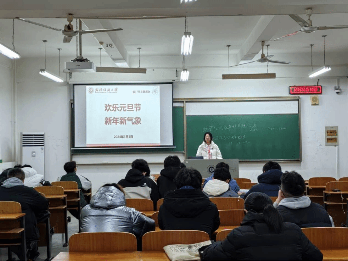 “追风赶月莫停留,平芜尽处是春山。”过去的2023,我们一起经历了久久为功的磨砺,“回首来路多感慨,最是奋斗动人心”:今天的2024,我们满怀期许,“山水万程,步履不停”。纺大人必将继续不忘初心、砥砺向上。为进一步了解校情国情,弘扬爱国爱校之精神, 各班级于1月1日开展《欢乐元旦节 新年新气象》主题班会,会议由各班班长及团支书主持。