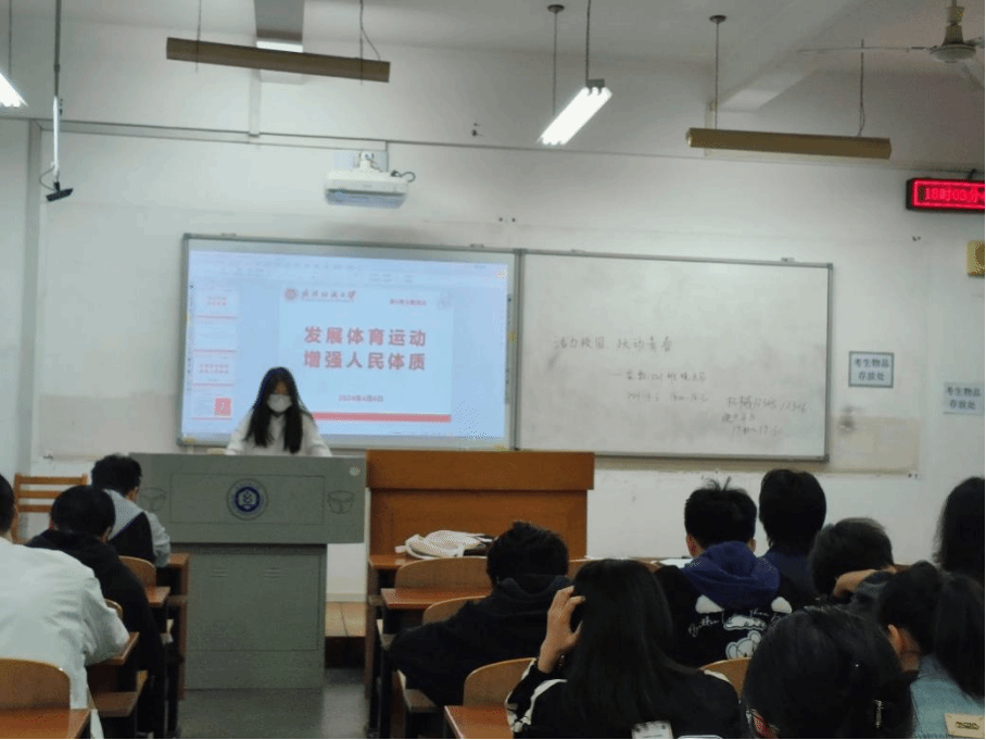 在介绍完“汉马”中的纺大身影后,各班班长向各位同学传达了关于开展2023—2024学年第二学期大学生体质健康测试的通知,介绍了《国家学生体质健康标准》测试(大学生)评分标准。同时,各班班长还介绍了拯救“脆皮大学生”体测小tips,来帮助同学们更好的来准备体测。