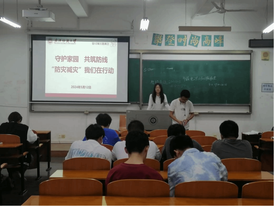会议伊始,班长向大家详细介绍了全国防灾减灾日的来历,通过地震实例让同学们掌握危险中应急避险、迅速逃生、自救的基本方法并了解防震减灾相关知识,牢固树立风险意识和底线思维,提高防震减灾能力。