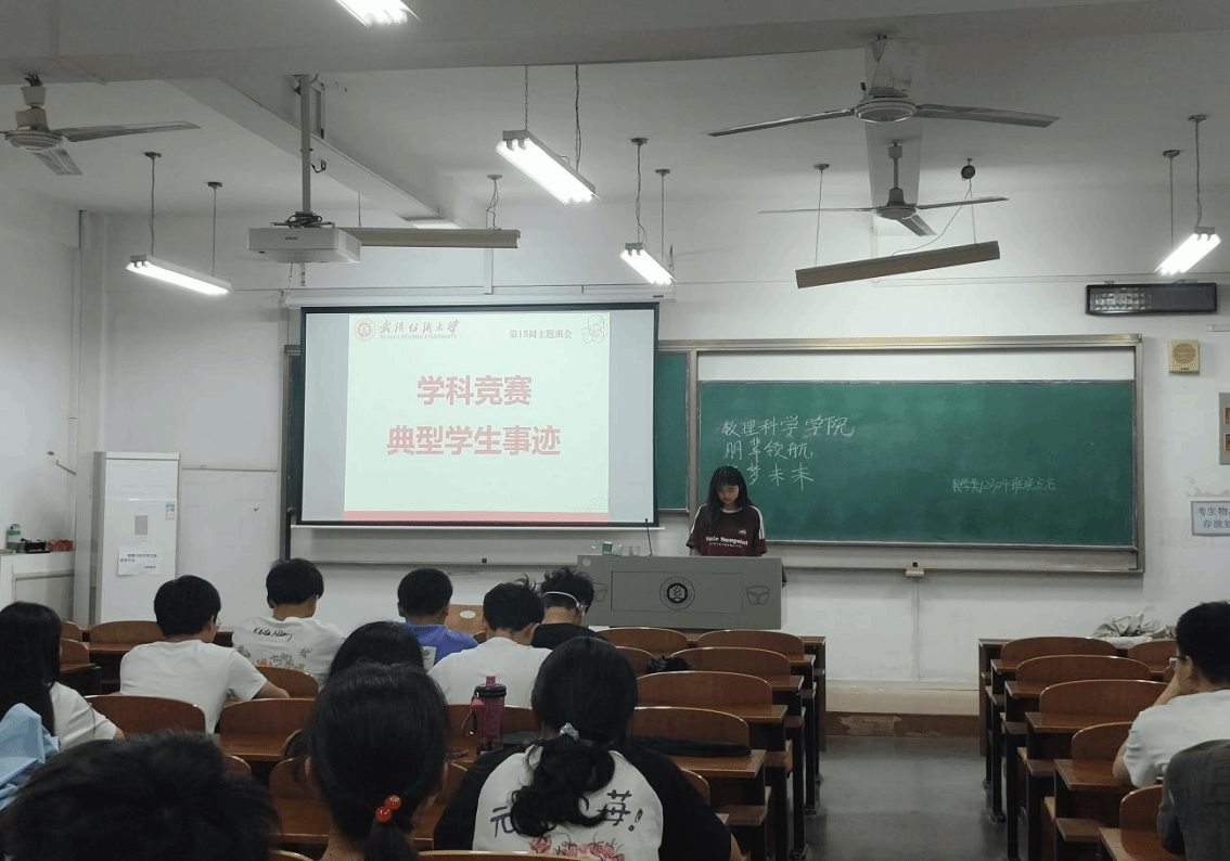 本次主题班会伊始,各班班长带领同学们了解在考研,就业,学科竞赛等方面的典型学生的事迹以及个人成就。希望通过该种方式,激励各位同学在自己的大学生活里,积极向上,合理规划自己的时间,有着明确的目标。向优秀的学长学姐靠拢,向更优秀的自己出发。