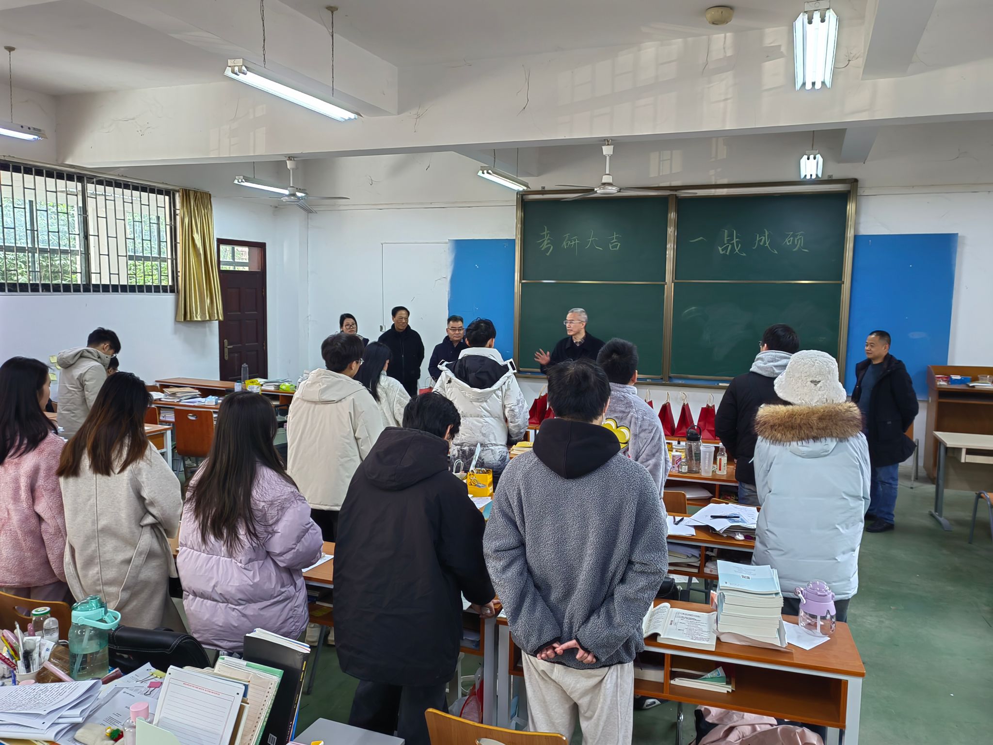 党委书记段溢波、院长汪胜祥、副院长许明耀、副院长郑仟、党委副书记陈国鹏来到考研自习室,为奋战在考研一线的学子们送上出征的祝福。