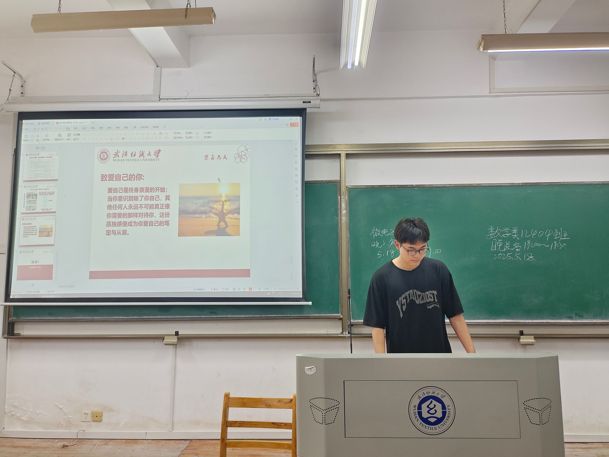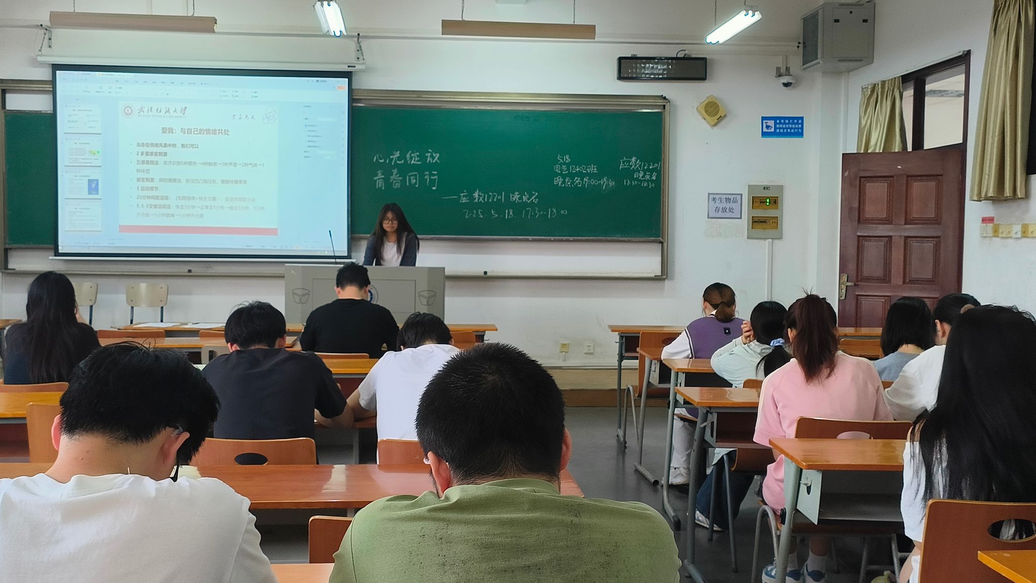 班会伊始,各班主团支书详细介绍了“5.25”,其内涵为谐音“我爱我”,呼吁认识自我价值、提升心理素质,以积极心态爱自己、爱他人、爱社会,是教育部选定的“全国学生心理健康宣传教育月”。