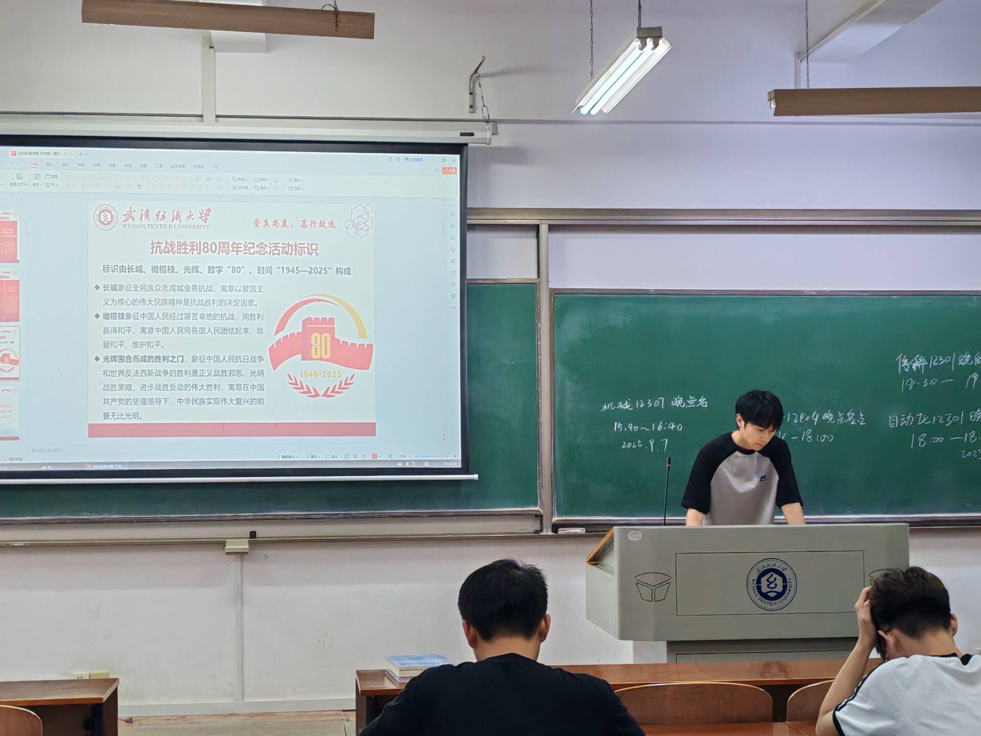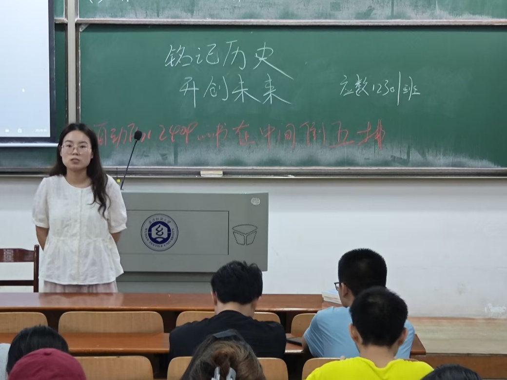 班会伊始,值此中国人民抗日战争暨世界反法西斯战争胜利80周年之际,本次班会以“铭记历史,开创未来”为核心主题。各班团支书通过详实的历史回顾与生动的影像资料,带领同学们重温了从九一八事变到抗战胜利的艰苦历程。平型关大捷、百团大战、湘西会战等重大战役的壮烈场景,杨靖宇、赵一曼等英雄人物的感人事迹,深深震撼着在场每一位师生。