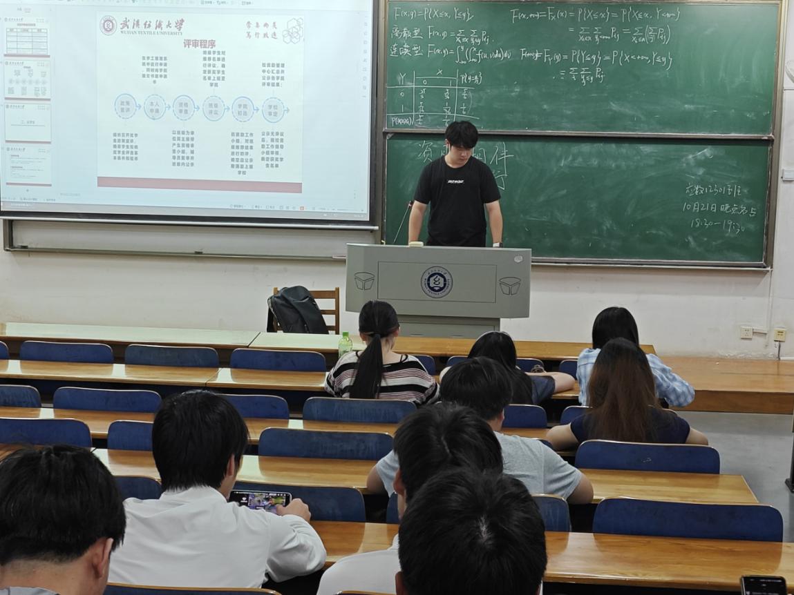 随后团支书介绍了奖学金体系,包括国家奖学金、国家励志奖学金、校级奖学金及社会捐赠类奖学金的评选标准与奖励金额,强调奖学金不仅是对学业成绩的肯定,更是对综合素质的全面考察,鼓励同学们在保持优异成绩的同时积极参与科研竞赛、志愿服务与校园活动,全面提升个人竞争力。