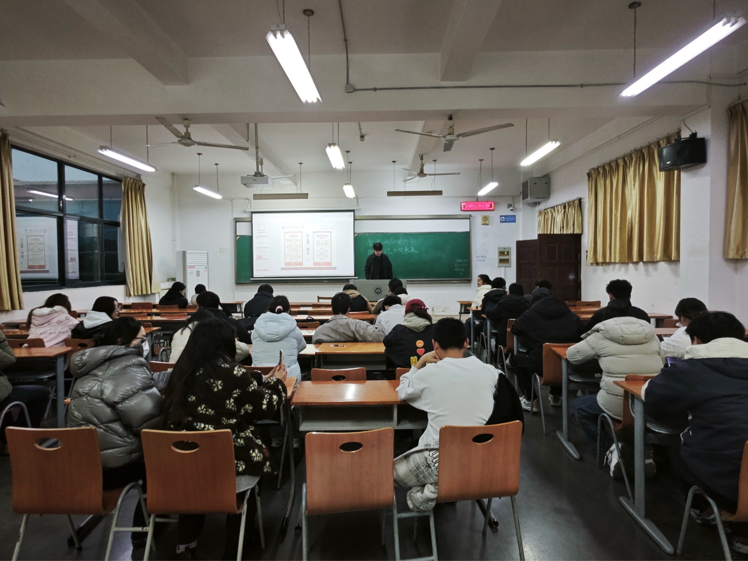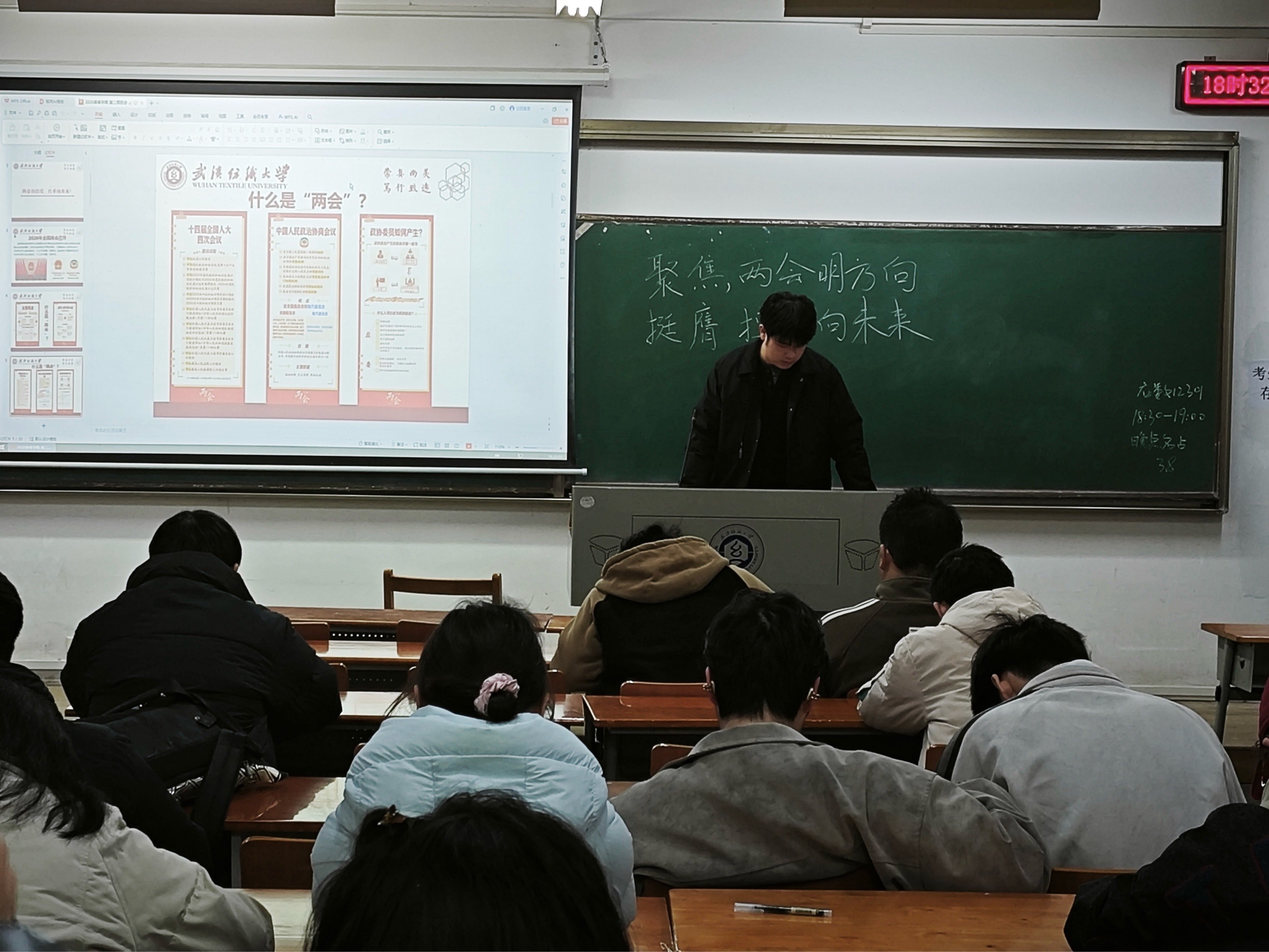 在讲解中,各班班长重点阐释了“智能经济”这一全新提法,强调人工智能等新技术正深刻改变经济形态,为青年学子在科技创新、产业升级等领域提供了前所未有的机遇。同时,他结合“投资于人”的关键词,解读了两会在教育、就业、医疗等民生领域的部署,鼓励同学们将个人发展融入国家发展大局,在服务社会中实现人生价值。