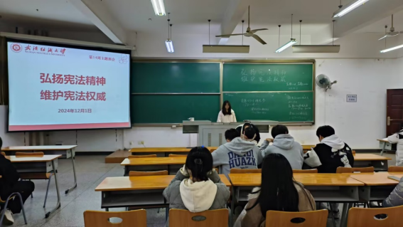 辅导员苗帅参加了24部分班级班会。针对24级同学,他强调,宪法的根基在于人民出自真诚的信仰。弘扬宪法精神,推荐你全面依法治国,建设社会主义是基础工程。通过深入开展尊崇宪法,学习宪法,遵守宪法,维护宪法,运用宪法的宣传教育活动,牢固树立宪法法律至上、法律面前人人平等、权由法定、权依法使等基本法制观念,维护宪法权威。