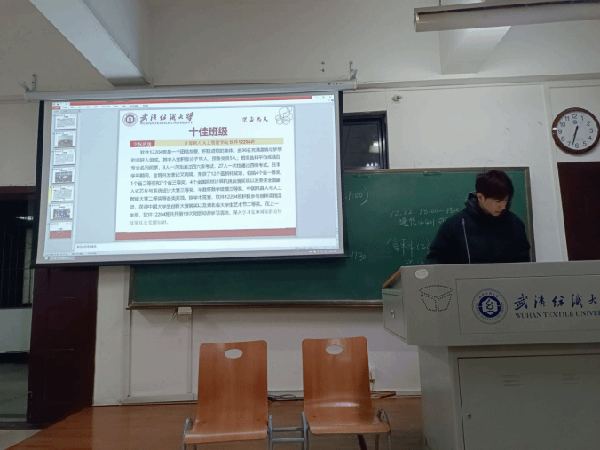 会议伊始,各班团支书向大家分享了获奖的十佳班级的整体风貌,这里有学术争鸣的浓厚氛围,课堂上思维碰撞出智慧火花,课后讨论延续求知热情,班级平均绩点节节攀升,科研项目屡获佳绩,各类学术竞赛获奖名单中总有他们的身影,然后详细介绍了获奖班级的精神特点:团结友爱,困难面前的互帮互助,温暖的话语、贴心的行动……