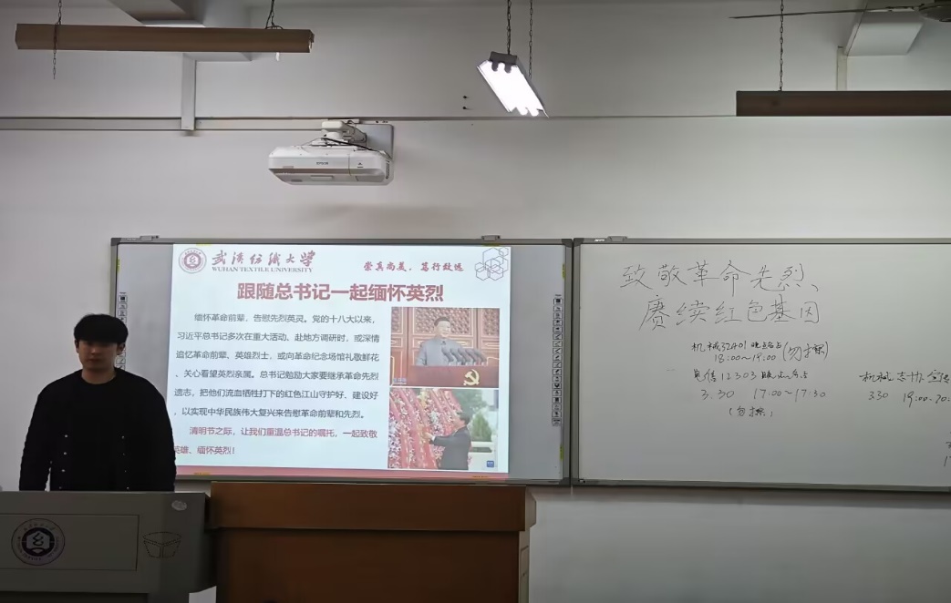 随后,各班团支书讲述了“习近平总书记”自党的十八大以来,多次在重大活动、赴地调研时追忆革命先烈、看望英烈亲属。清明节之际,大家重温习近平总书记的嘱托,一起致敬英雄、缅怀英烈。