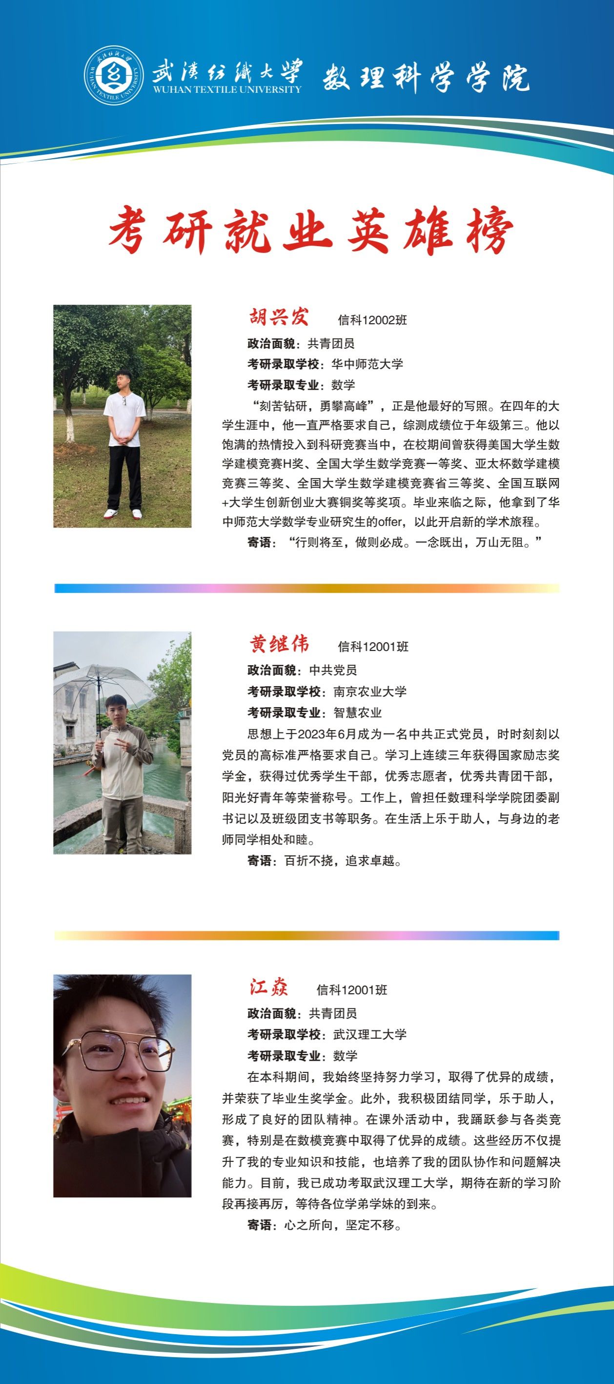 上一条:数理科学韦德bet 2024届考研就业英雄榜——李汉中、刘越、聂章媛 下一条:数理科学韦德bet 2024届考研就业英雄榜——蔡雨阳、杜志伟、胡孟阳