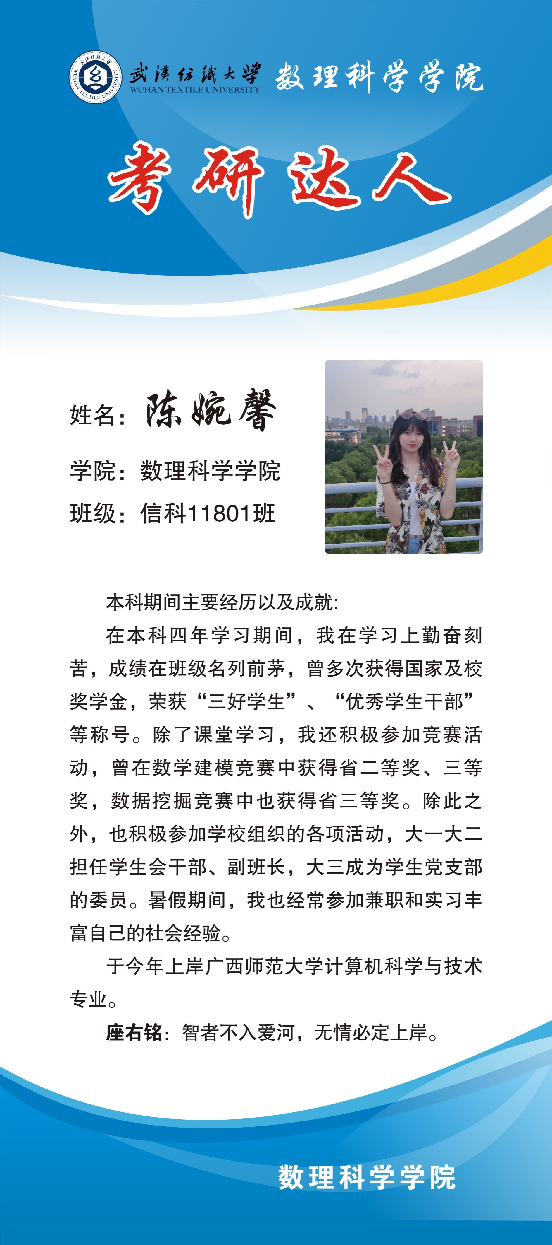 上一条:数理科学韦德bet 2022届求职达人——王辉 下一条:数理科学韦德bet 2022届考研达人——江雨薇