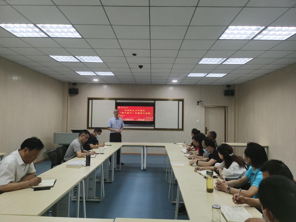 段溢波以《马克思主义中国化‘两个结合’引领伟大实践》为题进行领学。他以“坚持把马克思主义基本原理同中国具体实际相结合中实现了新的飞跃、坚持把马克思主义基本原理同中华优秀传统文化相结合中实现了新的飞跃”这“两个新的飞跃”为主线展开,深入解读了习近平新时代中国特色社会主义思想作为马克思主义中国化新的飞跃的历史意义和时代价值,强调要遵循“两个结合”,将马克思主义基本原理同中国具体实际相结合,同中华优秀传统文化相结合,用马克思主义观察时代、把握时代、引领时代,大力弘扬伟大建党精神。