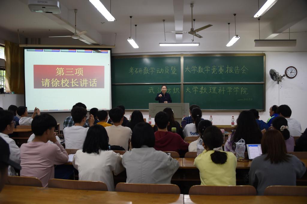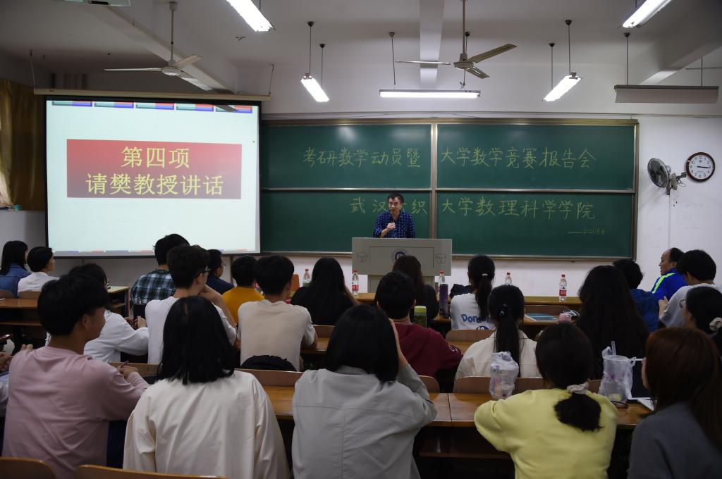举办考研数学动员暨大学数学竞赛报告会,校长徐卫林,湖北省大学生数学竞赛委员会主任、武汉大学博士生导师樊启斌教授,数理科学韦德bet