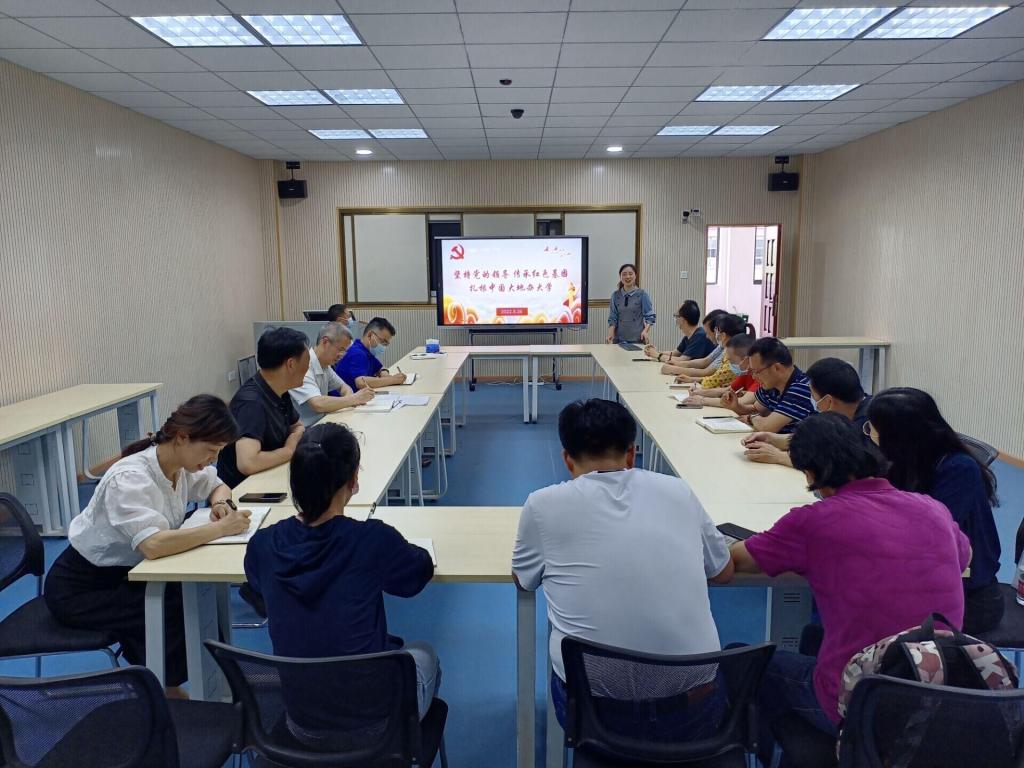 党委书记段溢波主持,大学物理教师党支部书记谭艳蓉领学。
