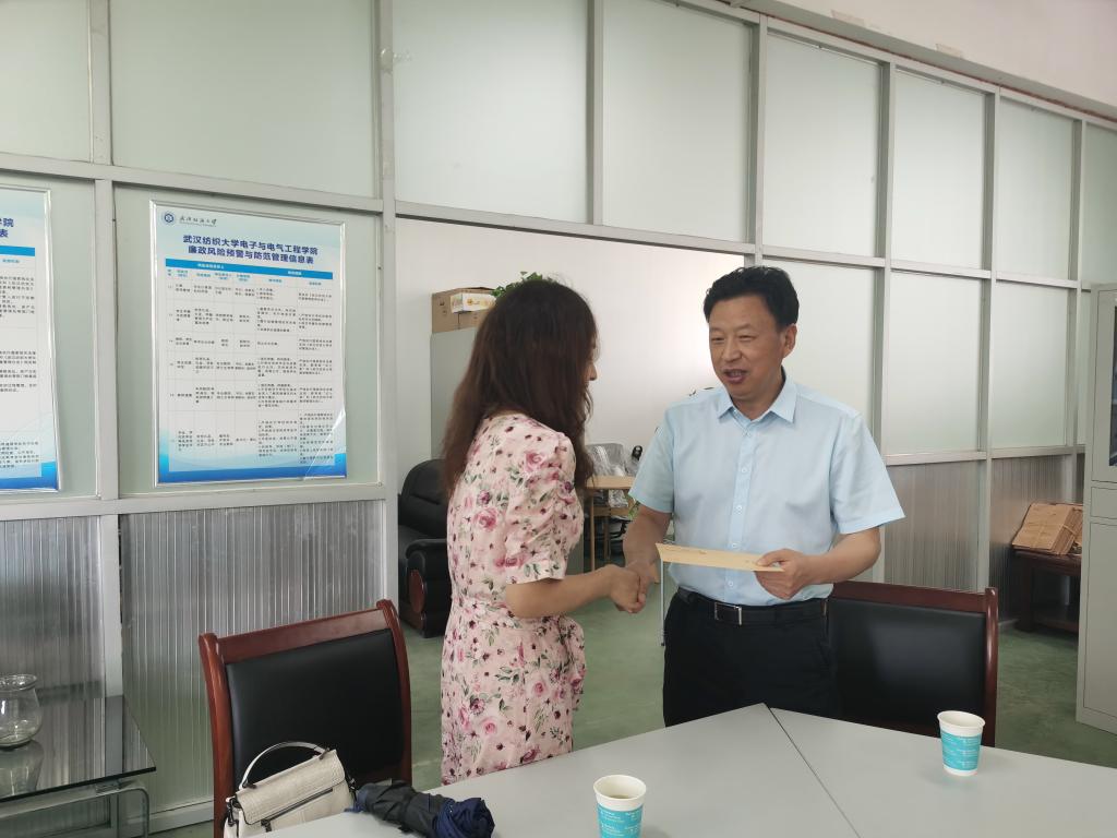 校纪委书记程碧海与董敏老师亲切座谈,仔细询问她目前的工作、生活情况,虚心听取她对韦德bet