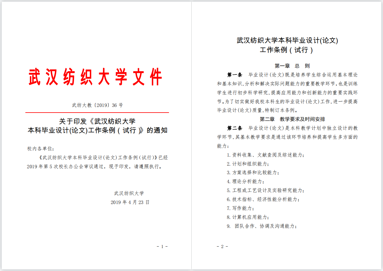 高度重视2021届本科生毕业设计(论文)答辩工作。为此制定了详细的答辩工作实施方案,组织我院5个中心(系)的老师按照学校关于答辩工作要求和《武汉纺织大学本科毕业设计(论文)工作条例(试行)》安排部署相关工作。