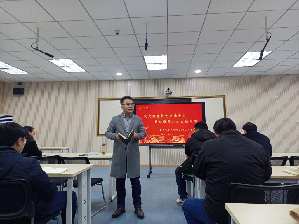 和学术方面的顶层设计、2023年学校的最大任务和当前学校发展中面临的最大压力等6个问题,传达了学校会议精神,田辉玉书记、徐卫林校长的讲话指示精神和2023年学校11件重点工作。布置了2023年韦德bet