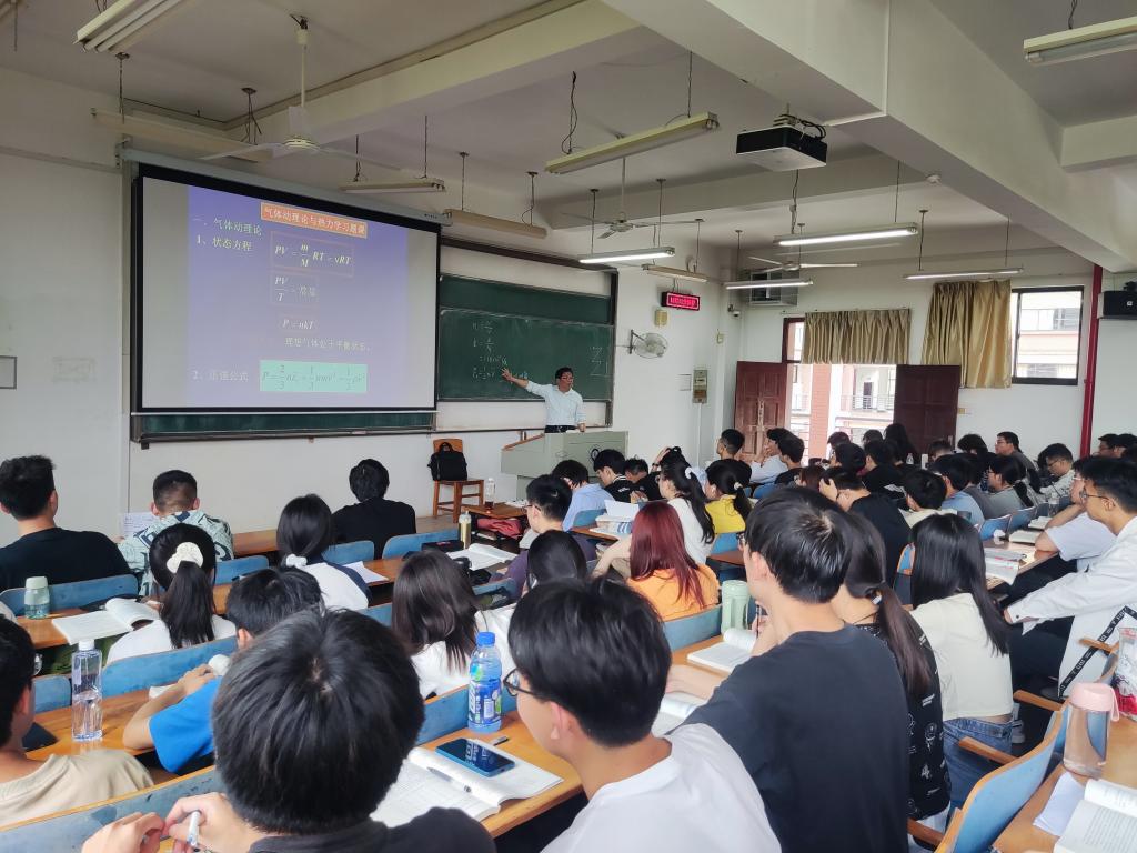 陈老师讲授的课程是《大学物理BⅠ》,他运用图文并茂、辅助动画演示的多媒体课件,并结合黑板板书,声情并茂讲解了分子物理与热力学习题课。参加观摩的老师在听课记录表上是这么概述陈老师的课堂教学:师生互动积极,课堂气氛活跃,授课极富感染力,充分调动了学生的主动性,激发了学生的学习兴趣,教学效果很好。