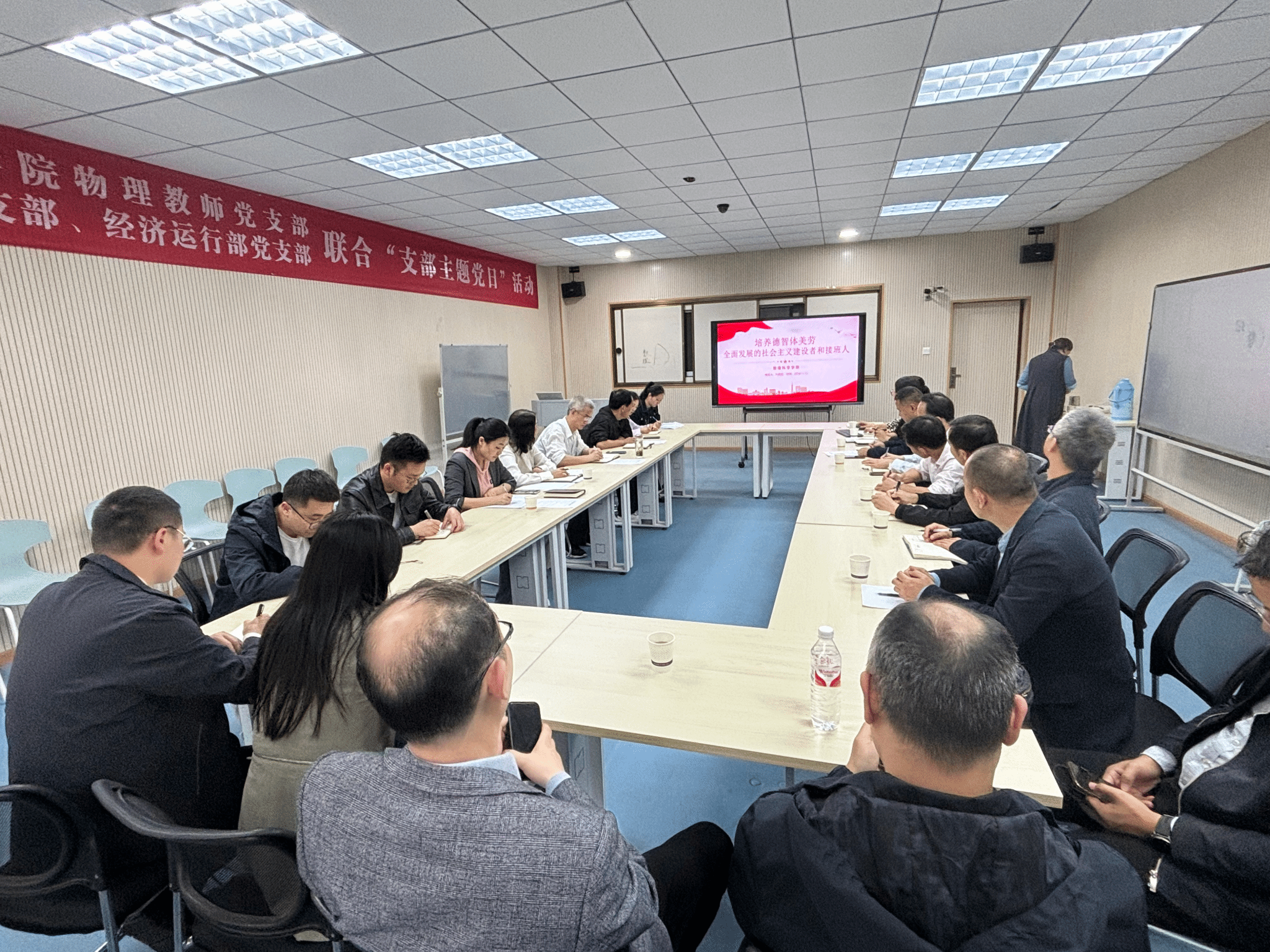 行政党支部书记刘莉丽领学了习近平同志《论教育》中收录的、2024年第17期《求是》杂志发表的习近平总书记的重要文章《培养德智体美劳全面发展的社会主义建设者和接班人》。文章强调,培养什么人,是教育的首要问题。我国是中国共产党领导的社会主义国家,这就决定了我们的教育必须把培养社会主义建设者和接班人作为根本任务。文章指出,怎样培养人,一是要在坚定理想信念上下功夫,二是要在厚植爱国主义情怀上下功夫,三是要在加强品德修养上下功夫,四是要在增长知识见识上下功夫,五是要在培养奋斗精神上下功夫,六是要在增强综合素质上下功夫。接着,与会人员观看了行政党支部制作的视频《培养德智体美劳全面发展的社会主义建设者和接班人》。
