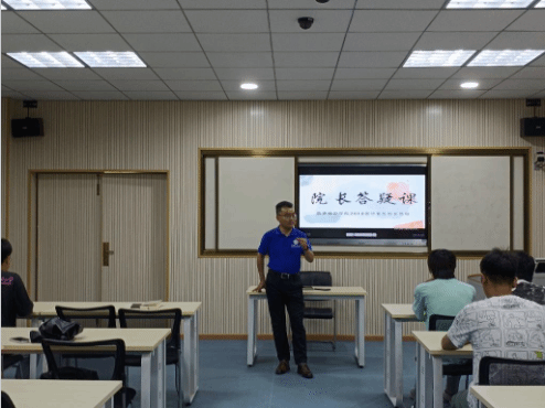 在4栋205教室召开院长答疑课,2021级全体学生参与。