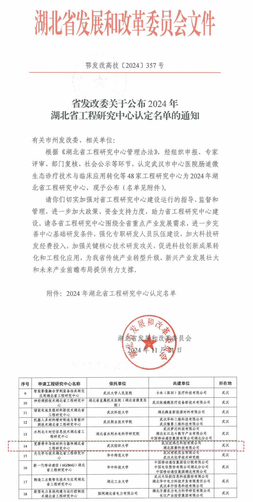 省级科研平台实现历史跨越。“宽禁带半导体材料与器件湖北省工程研究中心”喜获省发展和改革委员会批复。我校携手武汉优炜芯科技有限公司、湖北深紫科技有限公司共筑高级别科研平台,挂靠微电子韦德bet