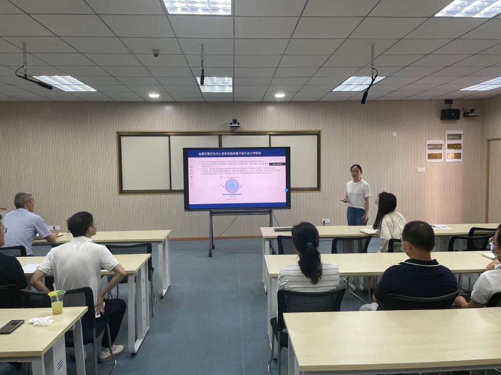 精密测量科学与技术创新研究院开展为期一年的访学。该研究院是原子分子物理专业国内领先的科学技术研究机构,为徐家坤博士提供了较好的研修条件。她加入的束缚体系量子信息处理研究组在金刚石氮空位中心体系领域取得了重要的研究进展。通过与该研究组的合作,她对量子信息与量子热力学等研究方向有了较为深刻的了解。研究组最近的一些实验进展和成果也为她理论工作的深入提供了很好的契机。通过一年研修,徐家坤博士在现有的基础上修正方法、发展和完善模型,促进前期的研究得以深入进展,取得了相应的研究成果。在研修汇报中,她向与会人员介绍了她的研修工作,并详细介绍了她的研究课题——金刚石氮空位中心多体系统的量子动力学研究,以及发表的学术论文。