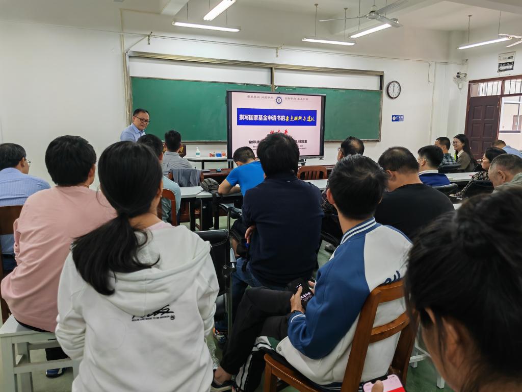 杨应奎教授从科学问题的凝练和科研项目的撰写两个方面详细介绍了国家自科项目申报的要点和技巧,并重点围绕项目名称、项目关键词、摘要、立项依据、研究内容、研究目标等十三项核心内容,将自己的申报经验倾囊相授。杨应奎教授专门提出申请书“三阶递进预评”质量提升建议,鼓励教师们认真打磨申请书,希望教师们能够写好一个本子,讲好一个故事,打动一次专家,赢得一次机遇!在报告结束后,杨应奎教授就教师们关心的疑惑和问题给予了详尽解答。