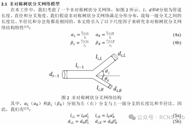谢磊:本次组会汇报近期工作,针对非对称树状分叉网络的分形结构,采用了两种不同的等效方法计算网络的有效渗透率。第一种通过计算每一级的等效流阻,根据Hagen-Poisille定律计算每一级的流量,按照质量守恒构建等式进行等效,第二种通过计算每一级的等效横截面积和等效渗透率,将每一级等效成一根单管,同样根据质量守恒构建等式,再将整体等效成一根单管计算网络的有效渗透率。